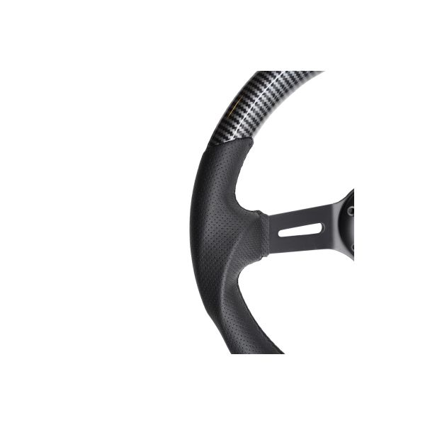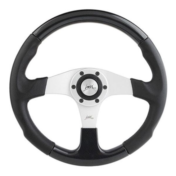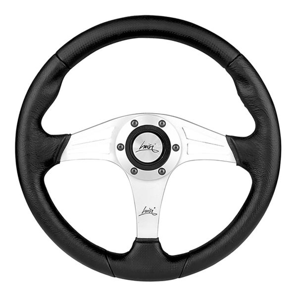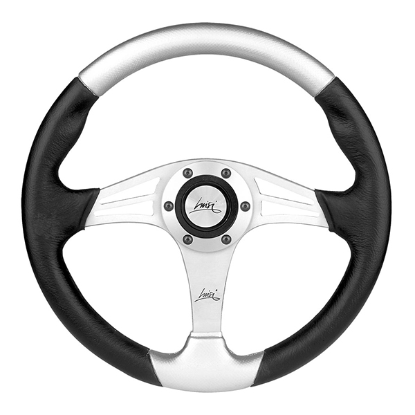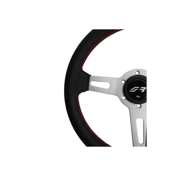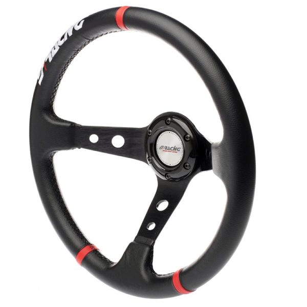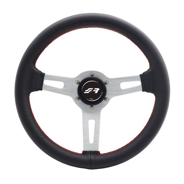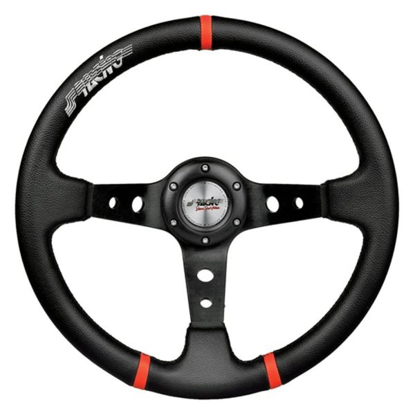 ΤΙΜΟΝΙ EPOCA ΜΑΥΡΟ/ΧΡΩΜΙΟ ΜΕ ΚΟΚΚΙΝΗ ΡΑΦΗ ΔΕΡΜΑΤΙΝΟ ΤΡΙΑΚΤΙΝΟ ΔΙΑΜΕΤΡΟΣ 350mm SIMONI RACING - 1 τεμ.